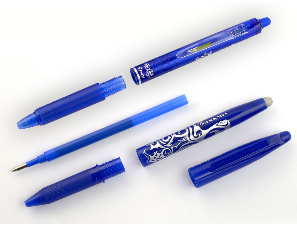 Recambio para bolígrafos Pilot Frixion Ball Clicker. Tres colores disponibles: azul, negro y rojo. Punta de 0,7 mm. Trazo de 0,4 mm. El estuche de 3 recambios.