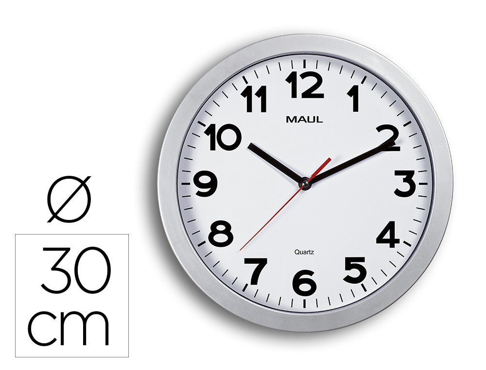 Reloj maul step de pared redondo 30 cm diametro electrico color plata