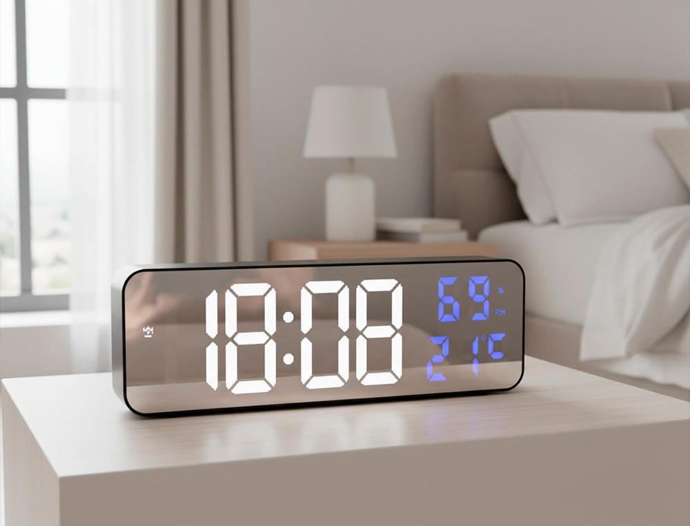 Reloj q-connect de pared y sobremesa digital con temperatura 230x35x70 mm