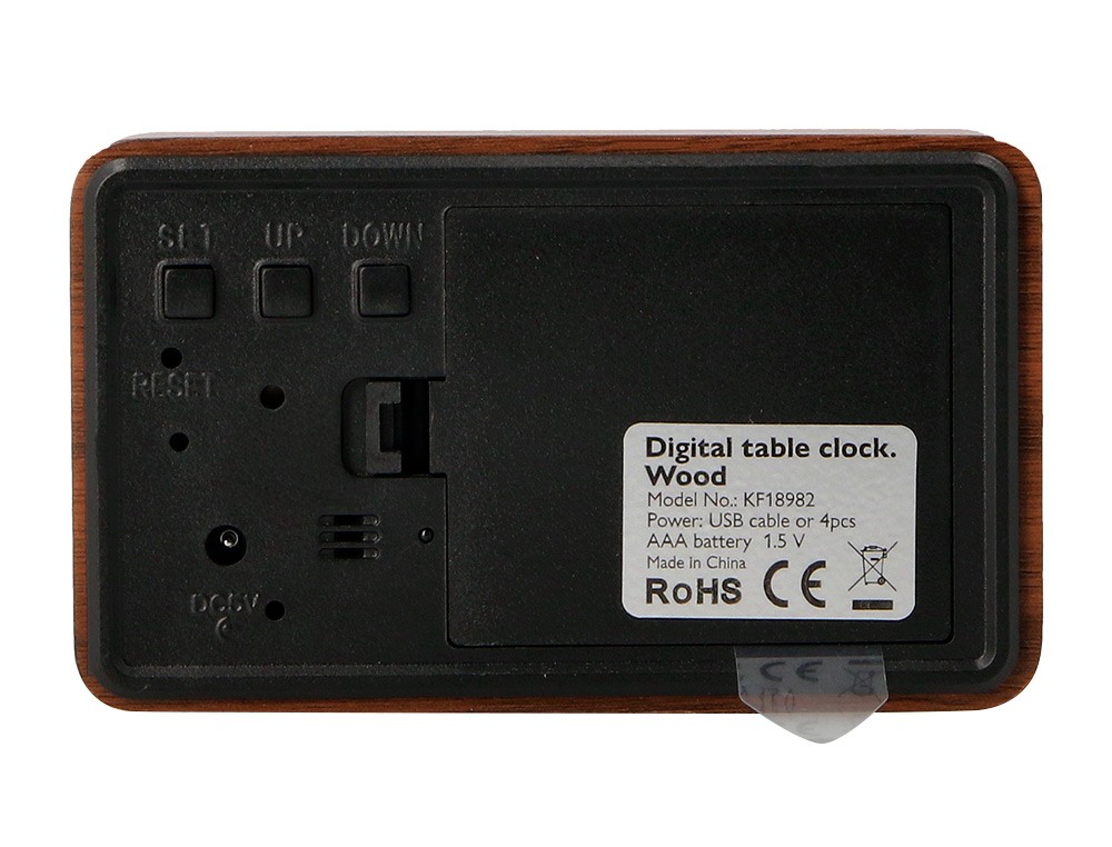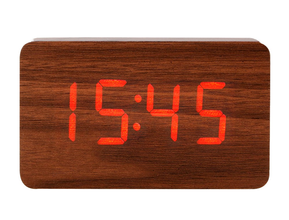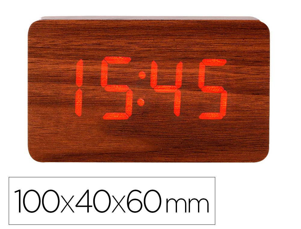Reloj q-connect sobremesa digital acabado madera luz roja 100x40x60mm