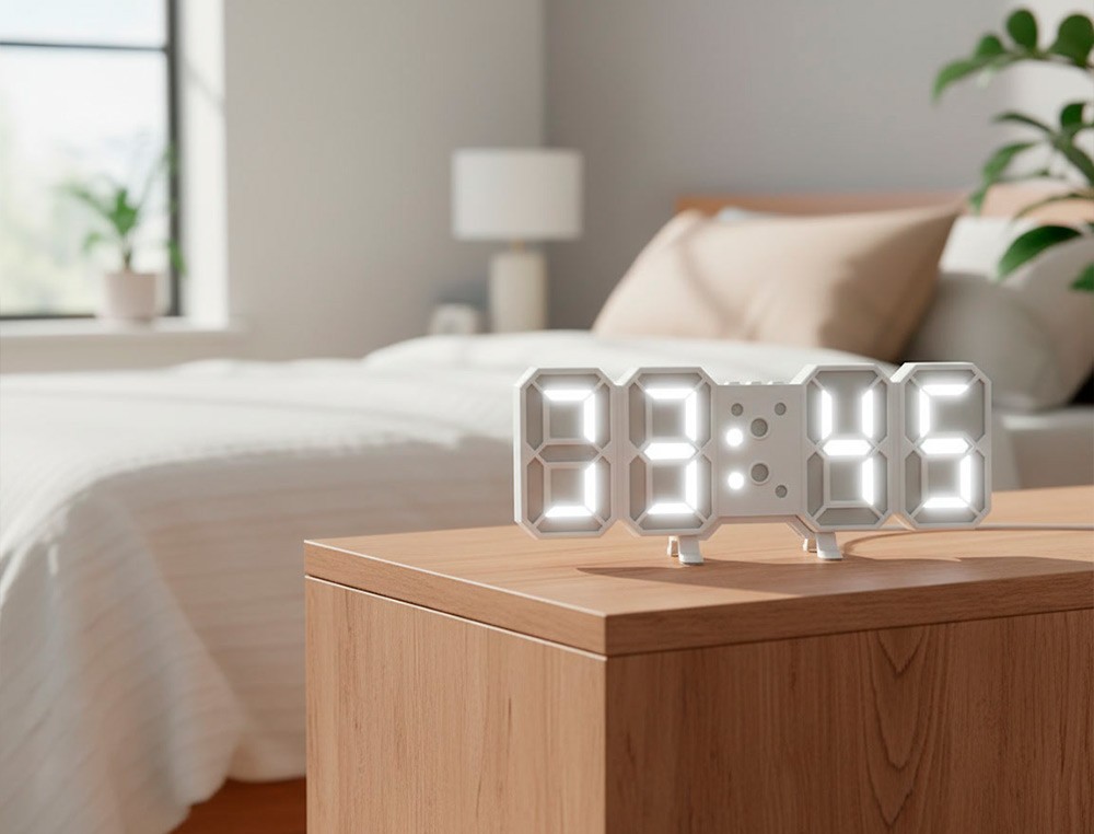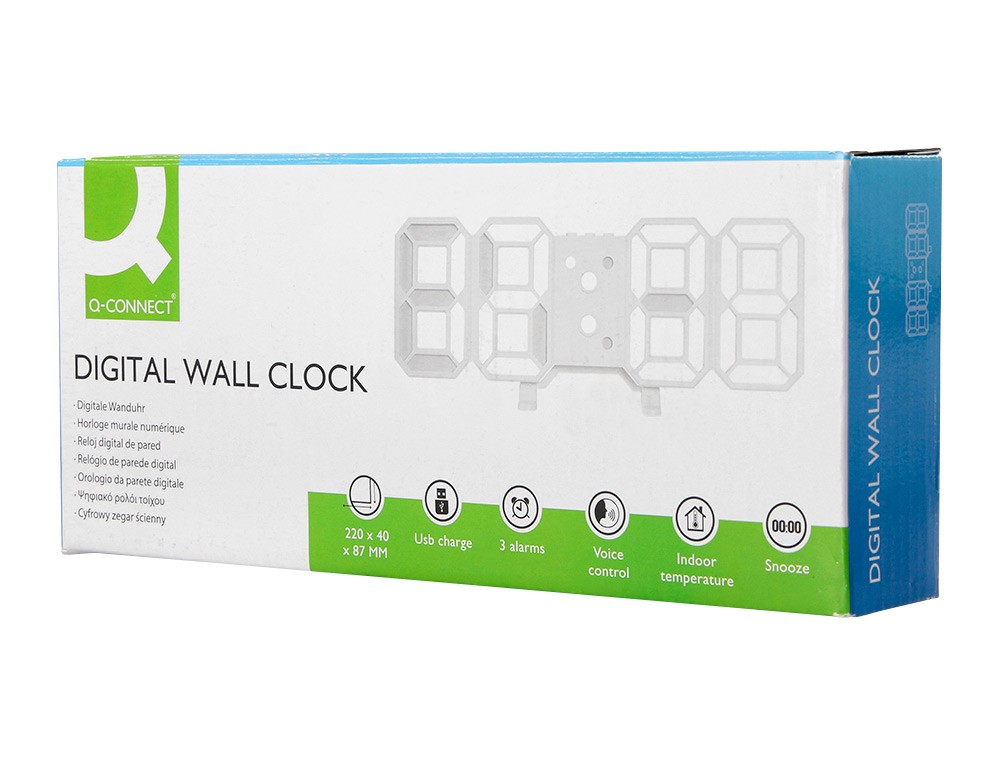 Reloj q-connect de pared digital con temperatura 3 alarmas control de sonido 220x40x87 mm