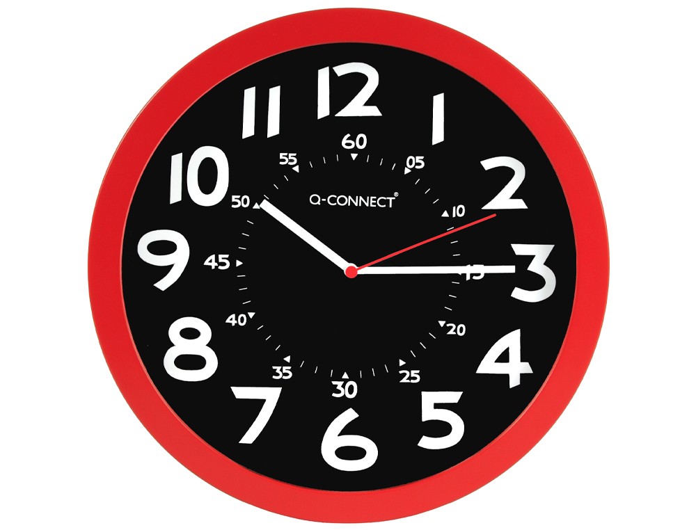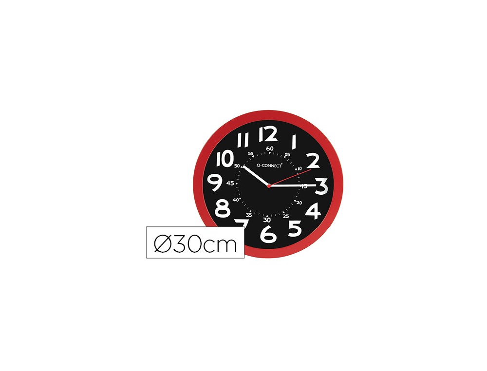 Reloj q-connect de pared plastico oficina redondo 30 cm color rojo y esfera color negro