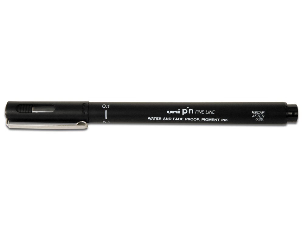 PIN es un rotulador calibrado Punta de poliacetal Tinta pigmentada de granresistencia al agua, que hace que una vez seca, no se pueda borrar Ideal para el dibujo profesional, artístico y para la escritura, ofreciendo un trazo nítido y suave a la vez. 0,8 negro