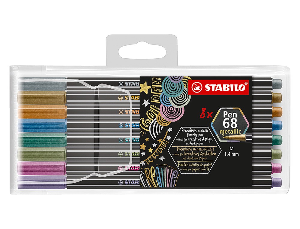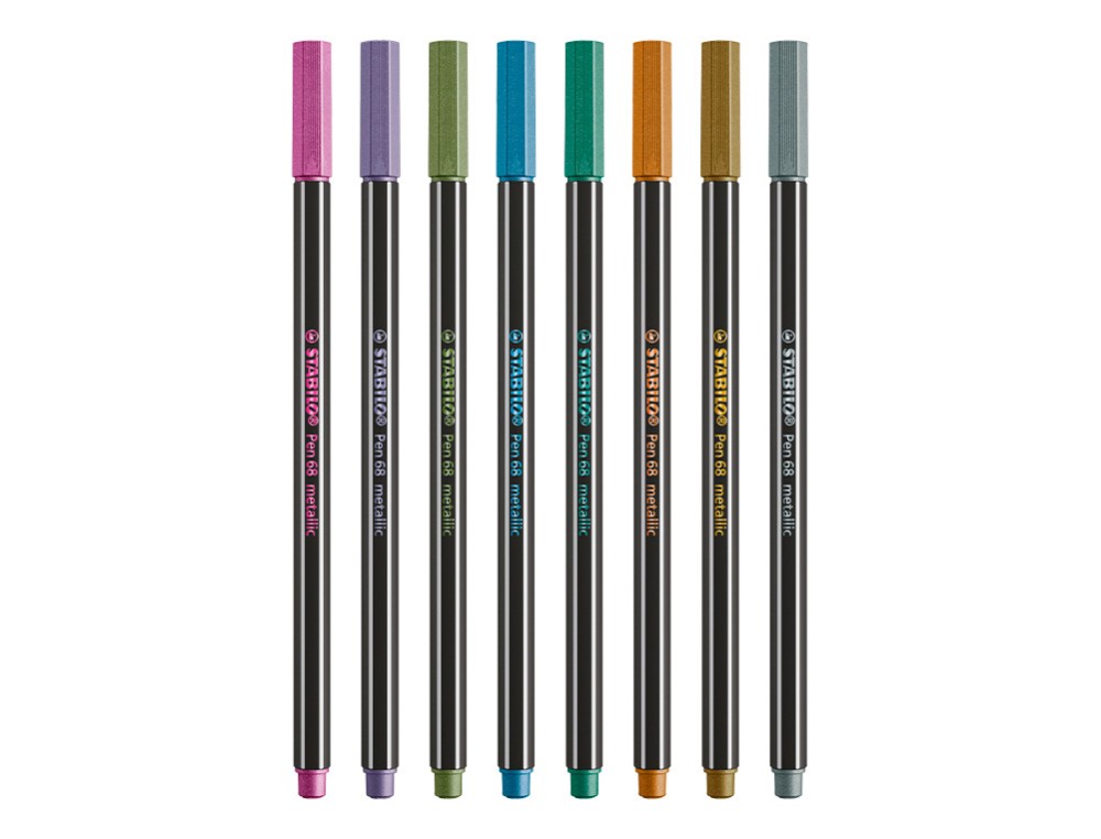 Rotulador stabilo punta de fibra pen 68 metallic estuche plastico de 8 unidades colores surtidos