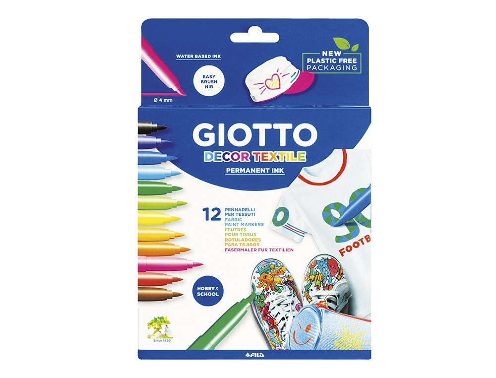 Rotulador giotto decor textile para camisetas caja de 12 unidades colores surtidos