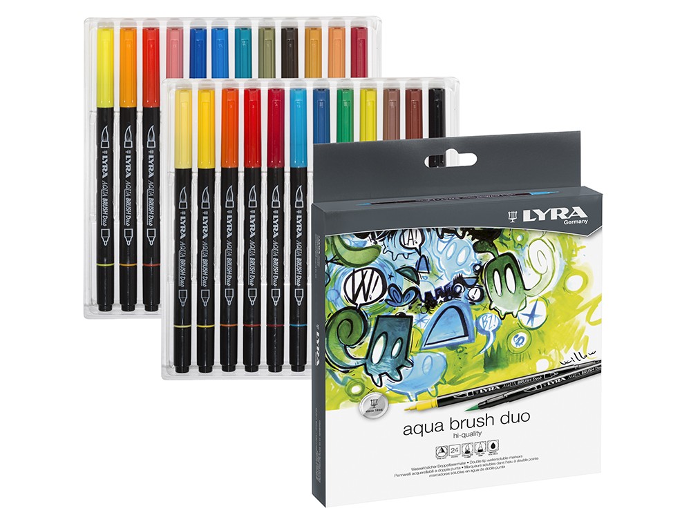 Rotulador con punta de pincel para artistas, diseñadores y también aficionados de todas las edades. Punta de fibra resistente. Por el otro lado hay una punta fina de 1 mm, que permite realizar líneas muy precisas. Tinta a base de agua, sin disolventes.