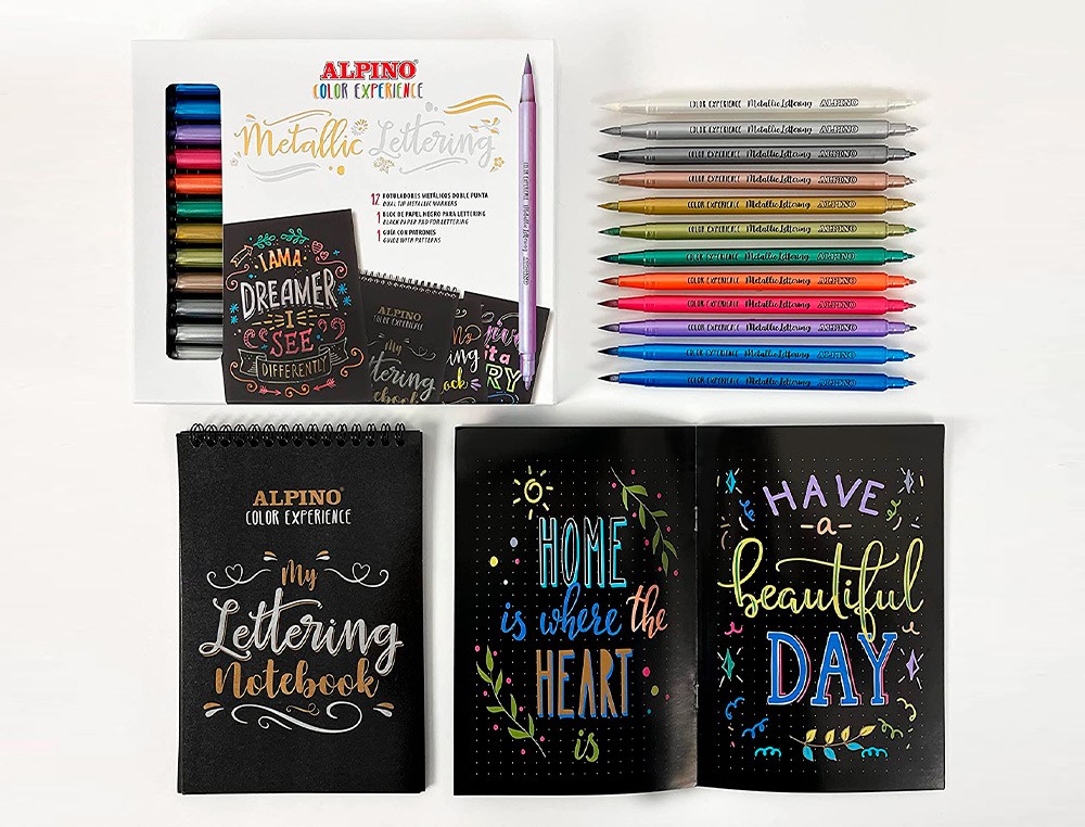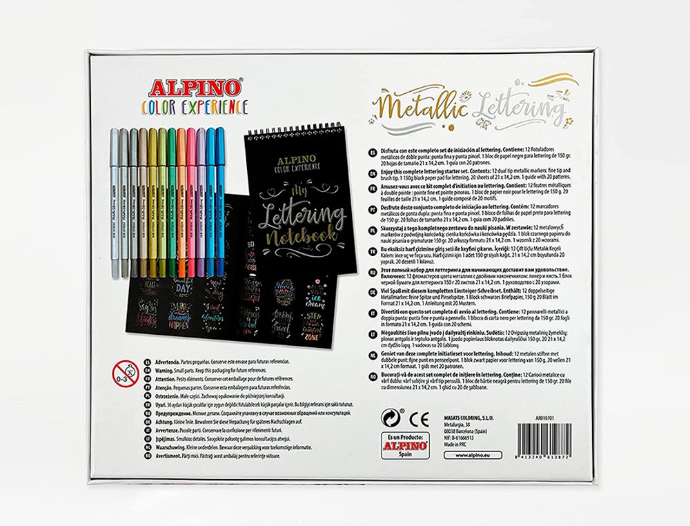 Rotulador alpino metallic lettering doble punta estuche de 12 unidades colores surtidos