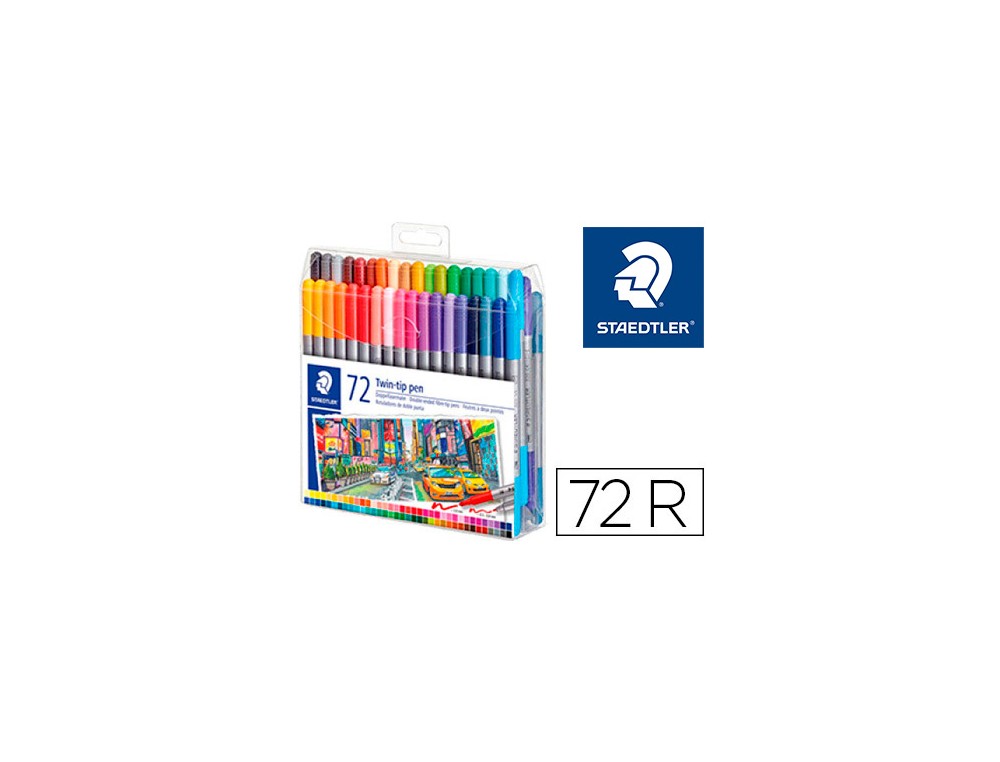 Rotulador staedtler doble punta de fibra 3200 estuche de 72 unidades colores surtidos