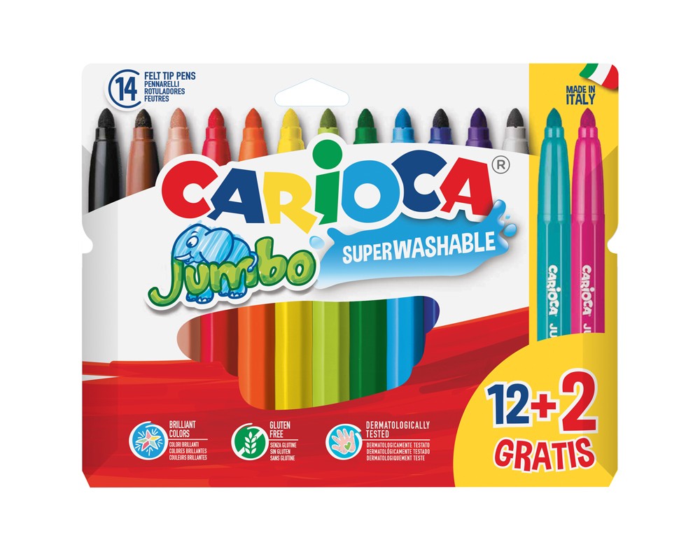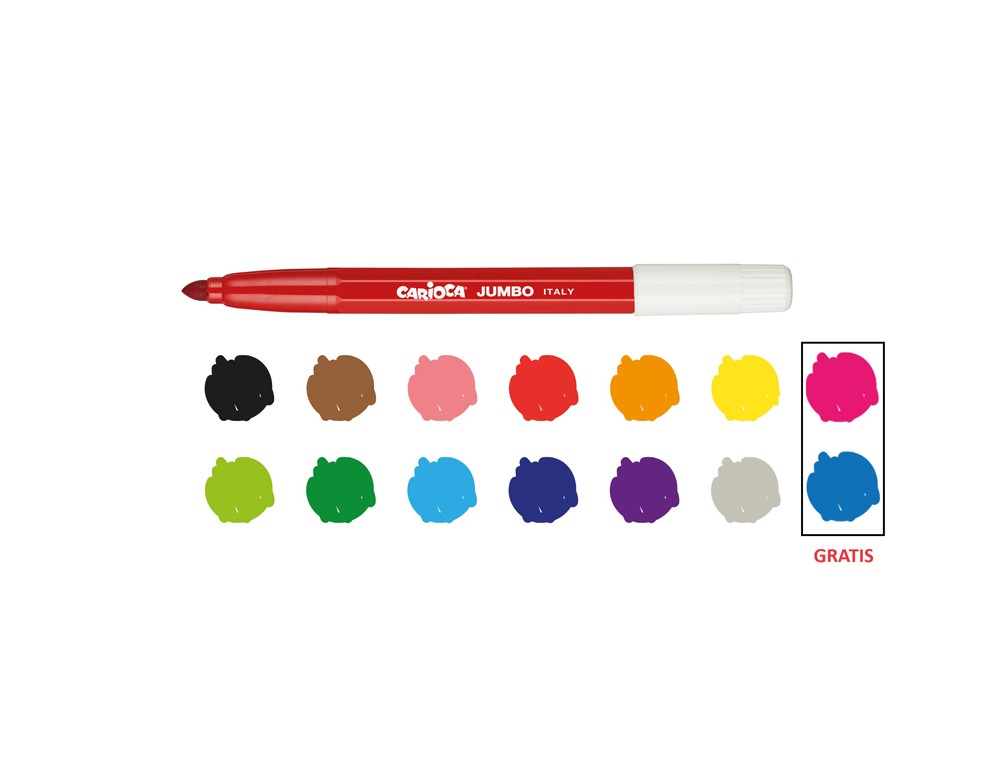 Rotulador carioca jumbo punta gruesa estuche de 12 unidades colores surtidos + 2 gratis