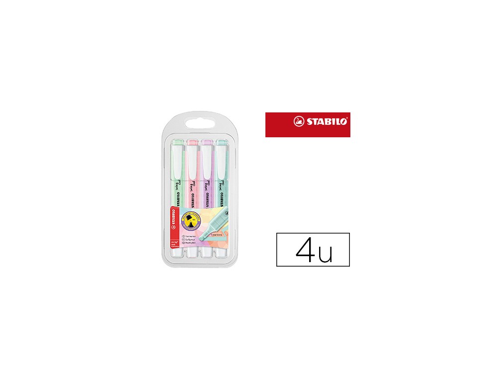 Rotulador stabilo fluorescente swing cool color pastel bolsa de 4 unidades colores surtidos