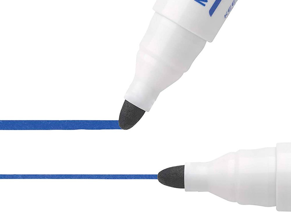 Rotulador para pizarra blanca con punta redonda cónica. Tinta a base de alcohol que genera menos olor. Se borran en seco fácilmente incluso después de varios días. Punta de 4,95 mm. Trazo de 1,4 mm.