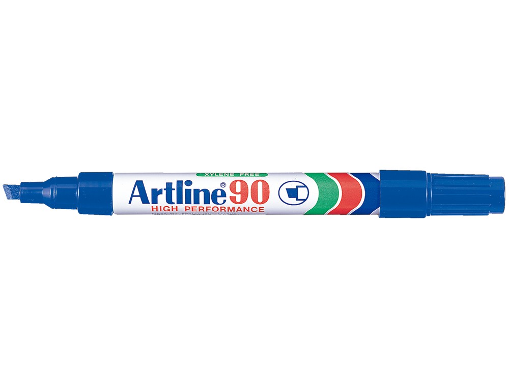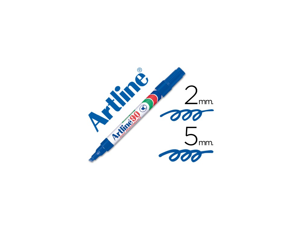 Rotulador artline marcador permanente ek-90 azul punta biselada 5 mm papel metal y cristal