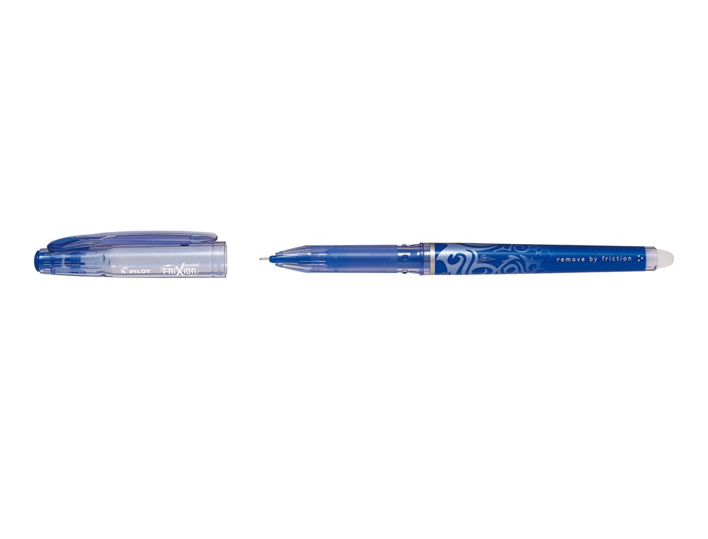 Bolígrafo con tinta gel. Tinta revolucionaria que desaparece por fricción. No mancha el papel. No deja restos. Punta de aguja para una mayor precisión. Con grip. Para borrar, fricciona con la bola que tiene en el cuerpo. Punta de 0,5 mm. Trazo de 0,25 mm.