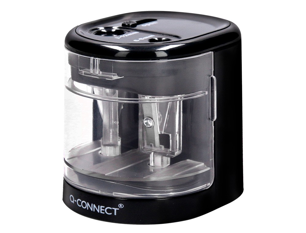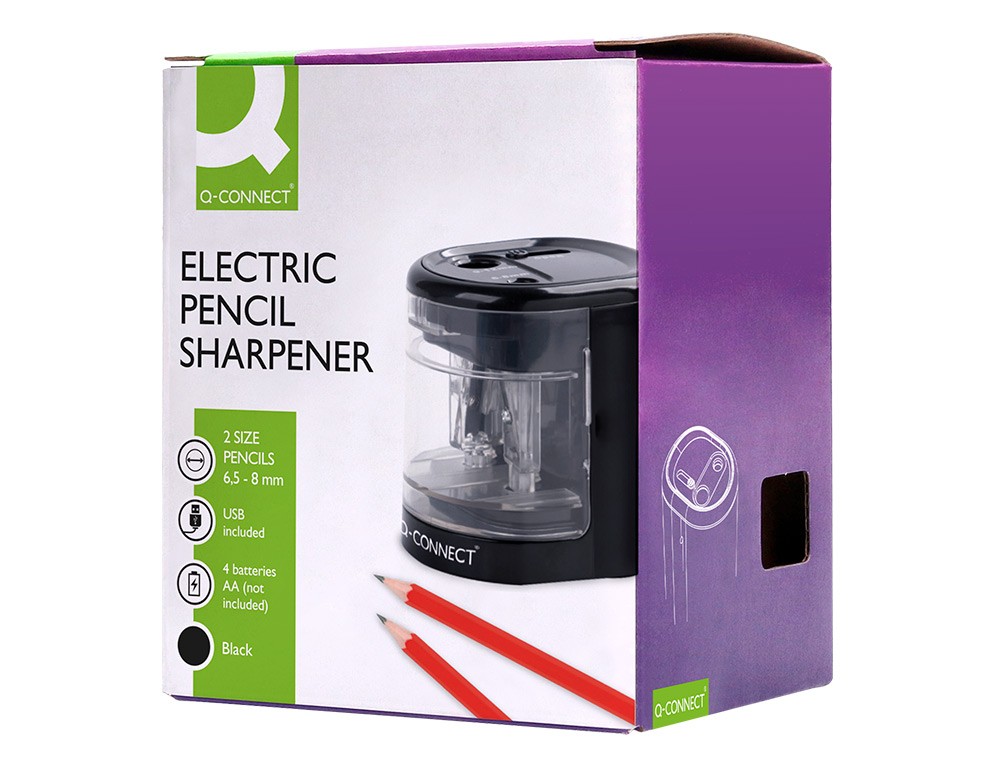 Sacapuntas q-connect kf14568 electrico de sobremesa cable usb/4 pilas aa afila cuchilla diametros de 6 a 12mm dos usos