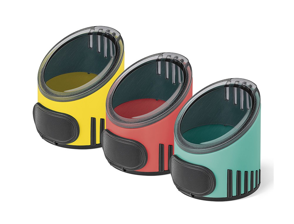 Diseño en negro, moderno e innovador. Para lápices normales de hasta 8,2 mm de diámetro. Afilalápices de metal de un agujero con depósito transparente. Tapa abatible con cierre de seguridad para evitar que las virutas se derramen. Disponible en 3 atractivos colores: amarillo, color y turquesa.