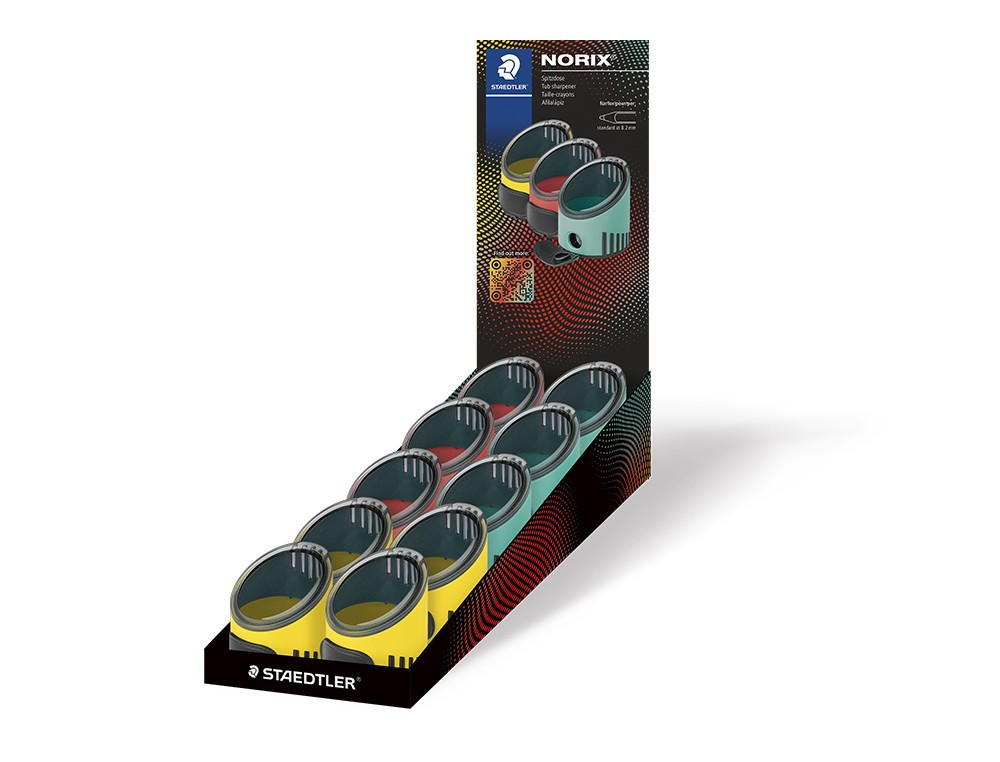 Sacapuntas staedtler norix metalico 8,2 mm con deposito 1 uso caja de 10 unidades colores surtidos