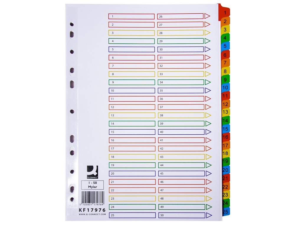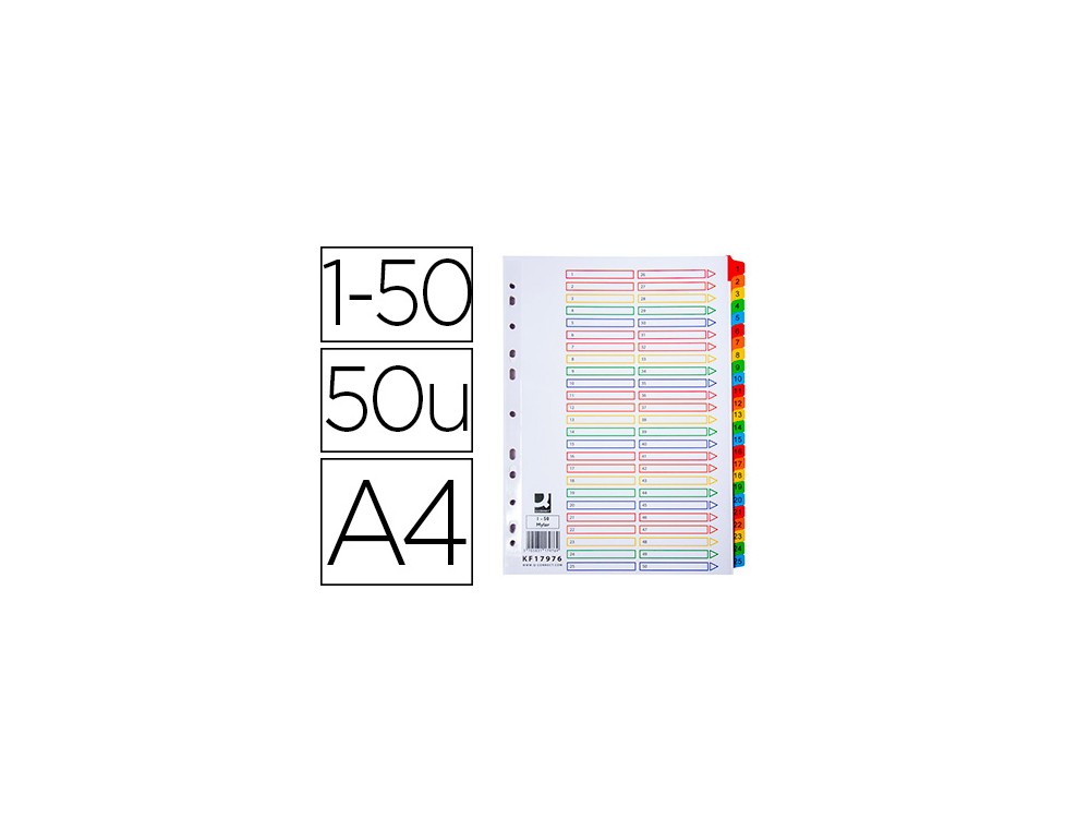 Separador numerico q-connect carton 1-50 juego de 50 separadores din a4 multitaladro