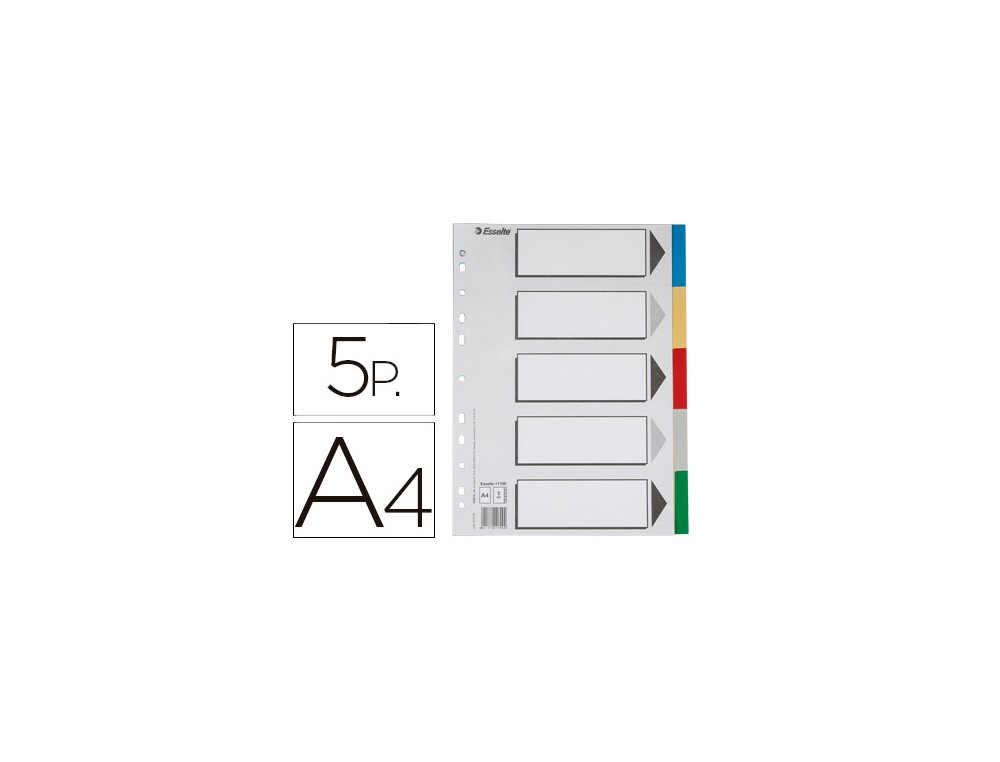 Separador esselte plastico juego de 5 separadores din a4 con 5 colores multitaladro