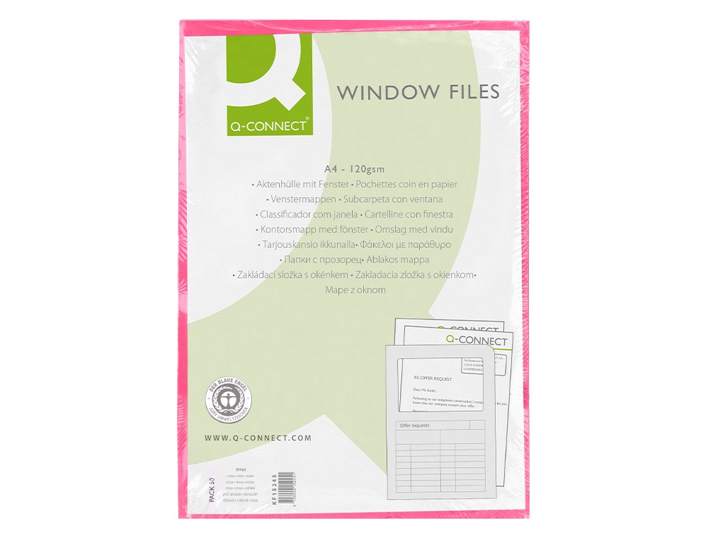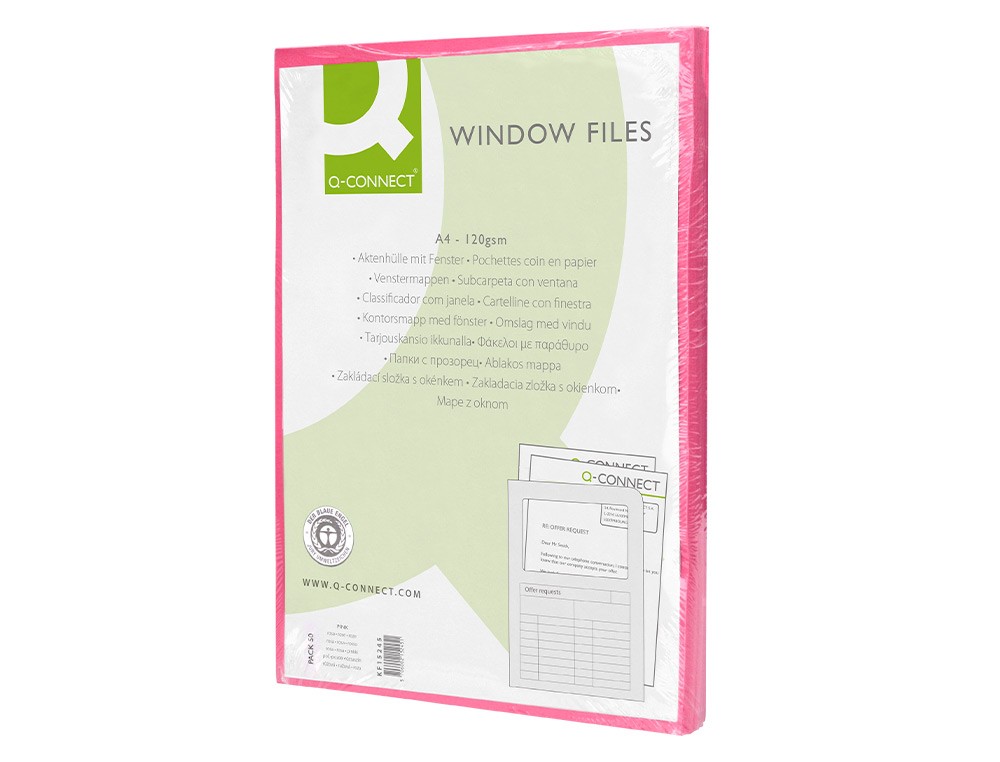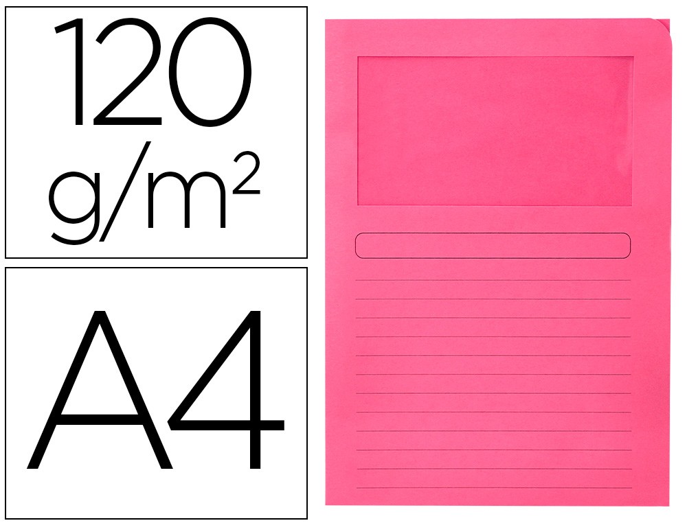Subcarpeta cartulina q-connect din a4 rosa con ventana transparente 120 g/m2