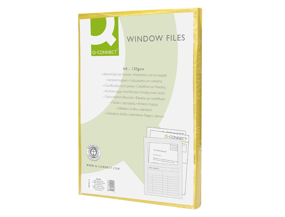 Q-connectSubcarpeta cartulina q-connect din a4 amarilla con ventana transparente 120 g/m2