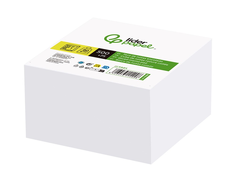Taco papel liderpapel encolado blanco 500+75 hojas 100x100x60 mm 80 g