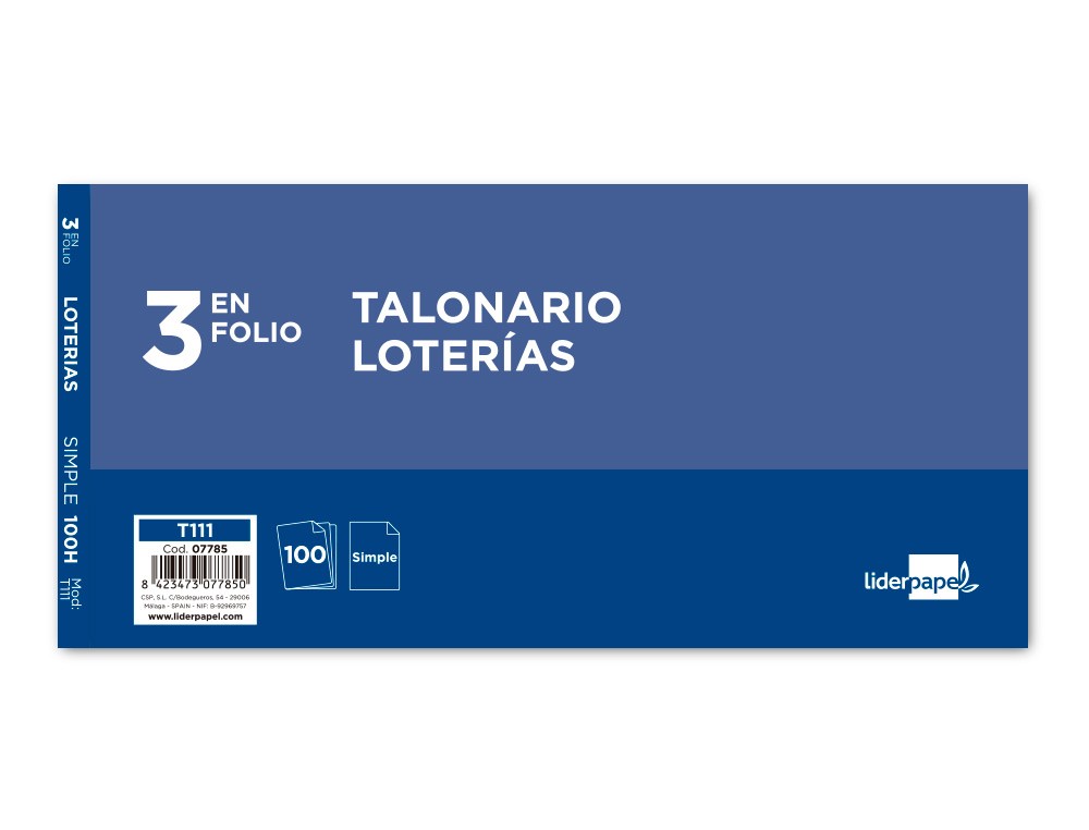 Talonario liderpapel loteria tres en folio 111