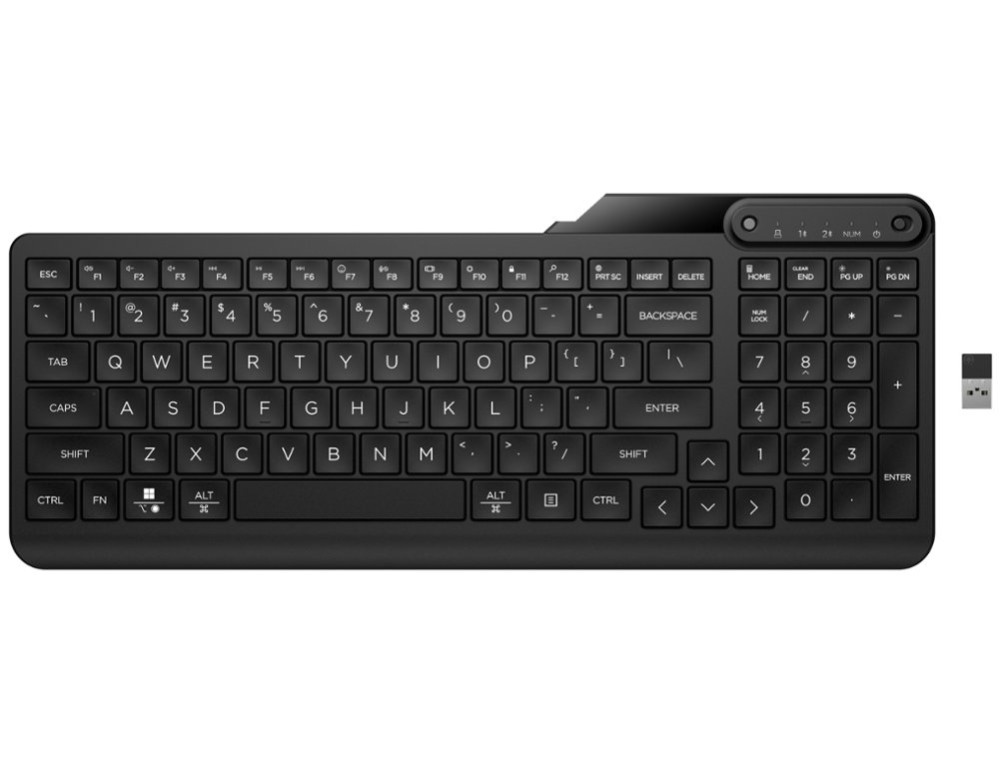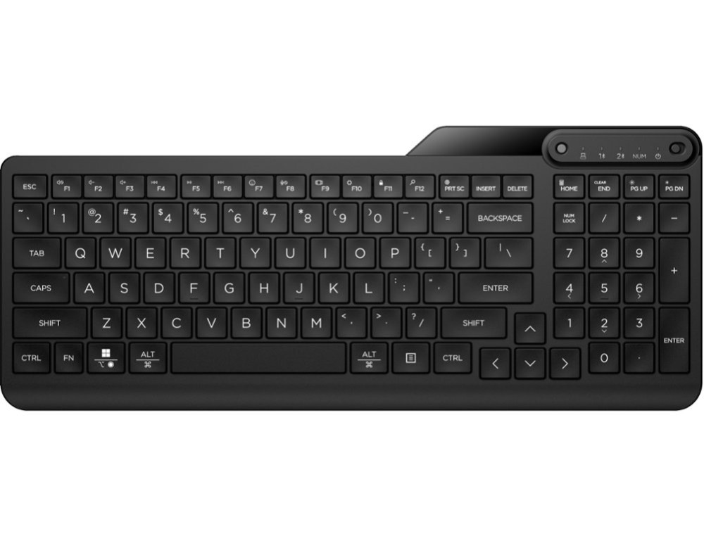La portabilidad se une a la productividad. Realiza tu jornada laboral en cualquier lugar. Este teclado ajustable, resistente a derrames y desinfectable adapta la experiencia completa del teclado en un diseño compacto y fácil de transportar que ahorra espacio en su escritorio y en su bolso. Agregue utilidad y comodidad a su jornada laboral con un teclado numérico completo, teclas direccionales y teclas cóncavas que hacen que escribir sea silencioso y cómodo. Conectividad sin complicaciones. La vida es mejor cuando tienes opciones. La funcionalidad de modo dual le ofrece dos formas sencillas de permanecer conectado en todos sus dispositivos. Conecte de forma segura hasta ocho dispositivos compatibles con un único dongle HP Unifyinging cifrado, o cambie entre hasta tres dispositivos con solo presionar un botón. Crea tu nueva clave favorita. Un poco de flexibilidad ayuda mucho. Programe las teclas F1 - F12 para que actúen como atajos personalizados o combinaciones de teclas difíciles par